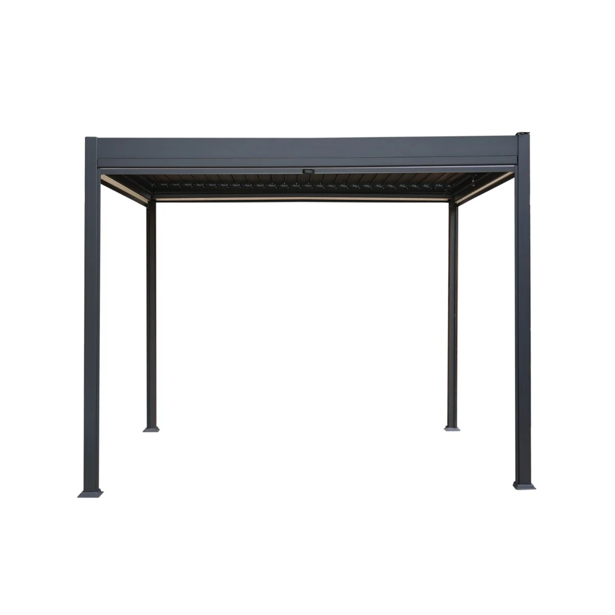 Anthracite Aluminium Pergola With White Blinds & LED Lights - 3m x 3m