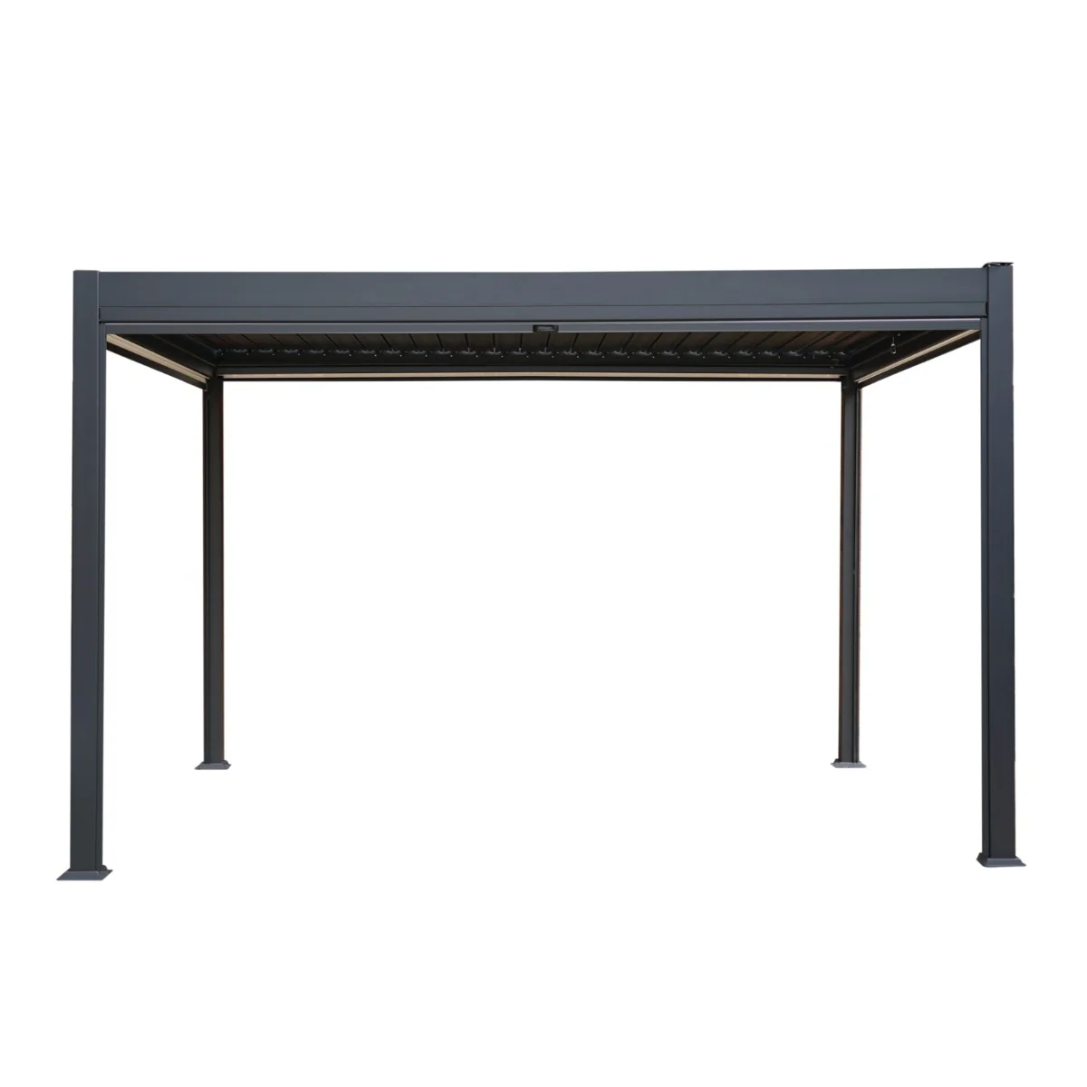 Anthracite Aluminium Pergola With White Blinds & LED Lights - 3m x 4m
