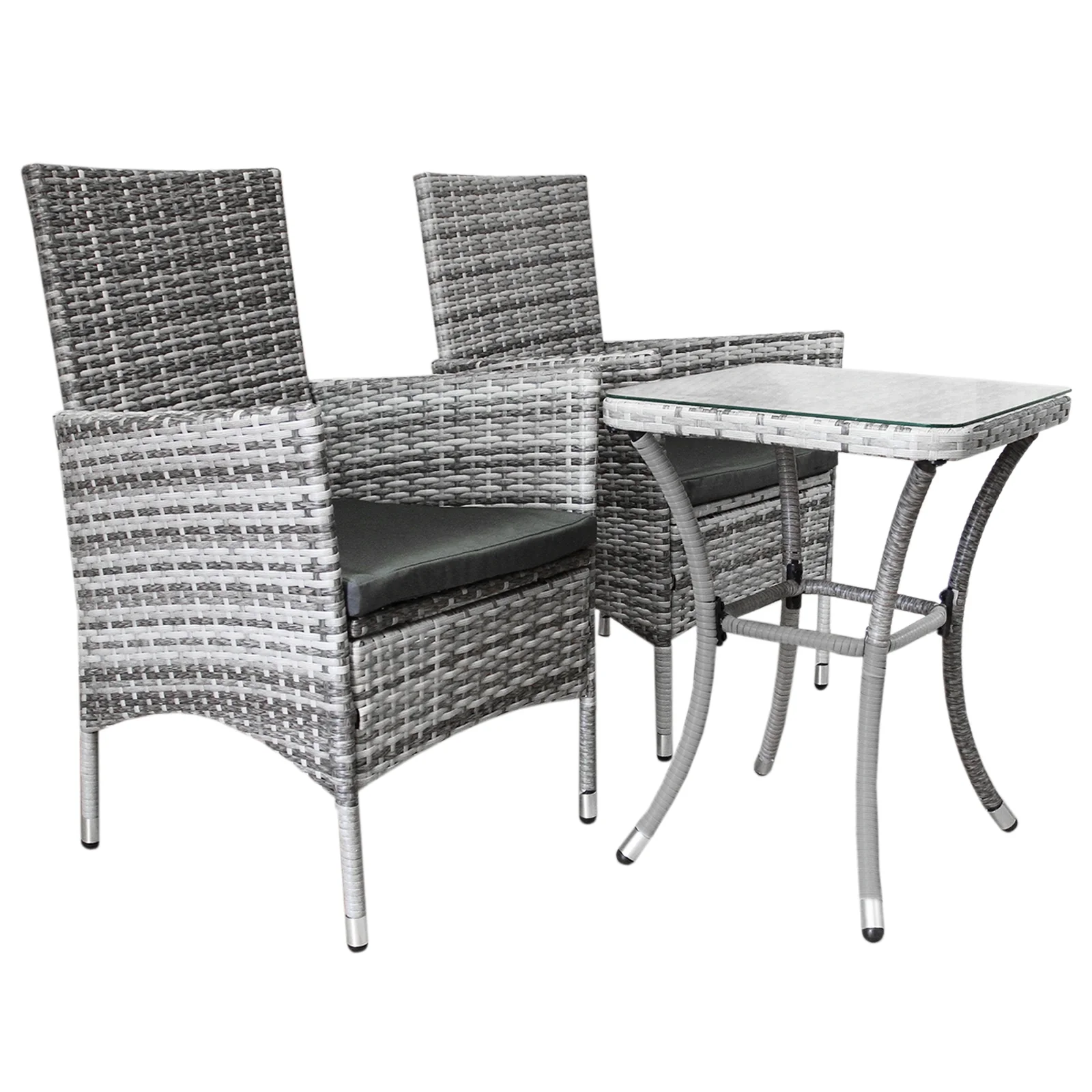 Designed for maximum style and comfort, this exquisite bistro set has 5cm thick cushions, seats 2 people and is sure to be the perfect centrepiece for any garden tea party. Transform your garden into a private paradise and be the envy of all your friends with this premium seating set. The easy-to-assemble flat-pack furniture enables you to relax outside with a drink in little to no time.