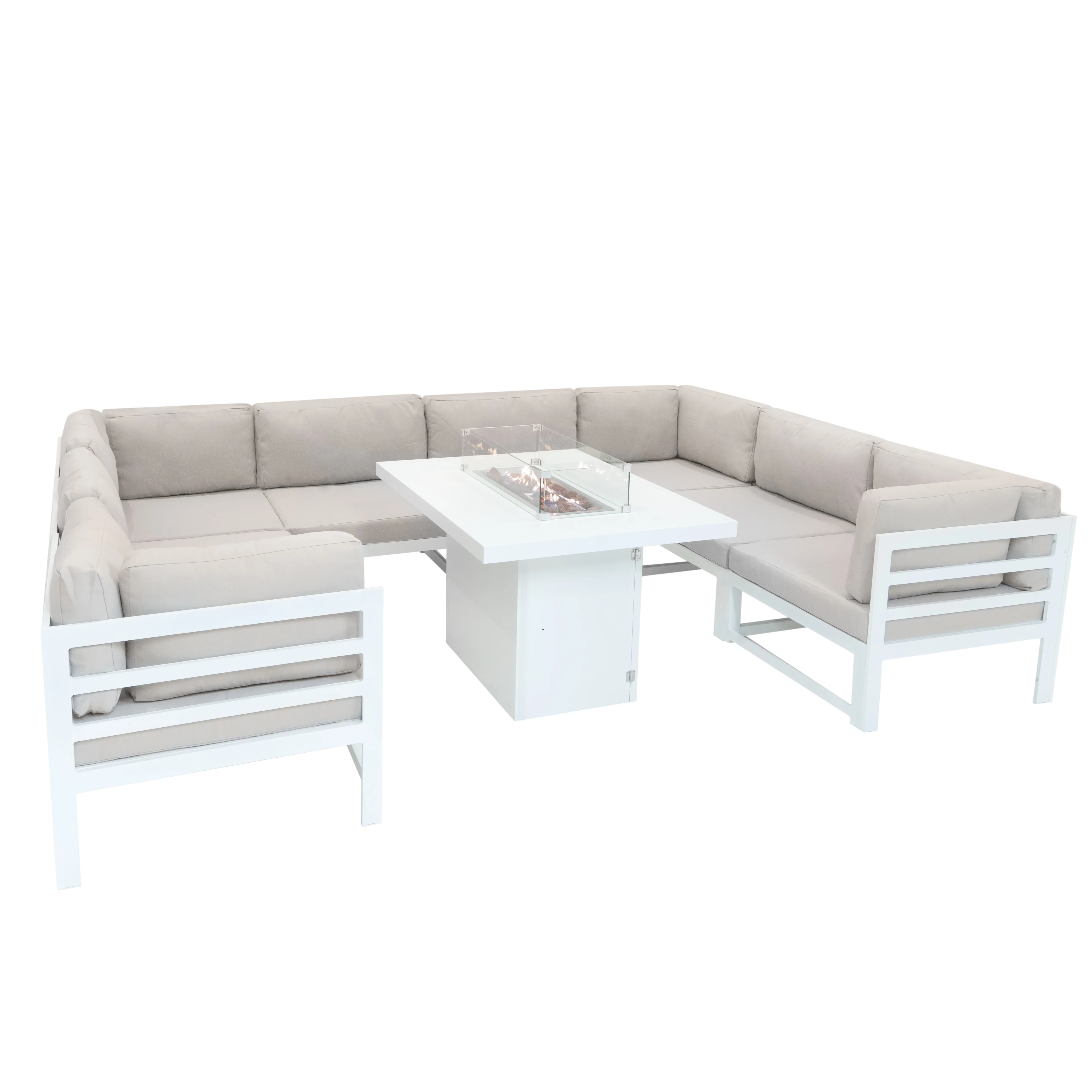 Modular Garden Furniture Set With Fire Pit - White